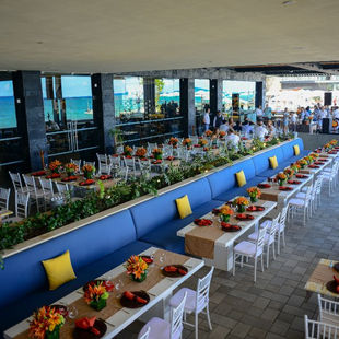 Tal vez buscas algo más elegante pero simple. Tropical Paradise reúne un maravillo entorno que nos ofrece el caribe para glorificarte en tu día especial con toques dorados y florales.
