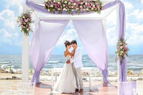 Tal vez buscas algo más elegante pero simple. Tropical Paradise reúne un maravillo entorno que nos ofrece el caribe para glorificarte en tu día especial con toques dorados y florales.